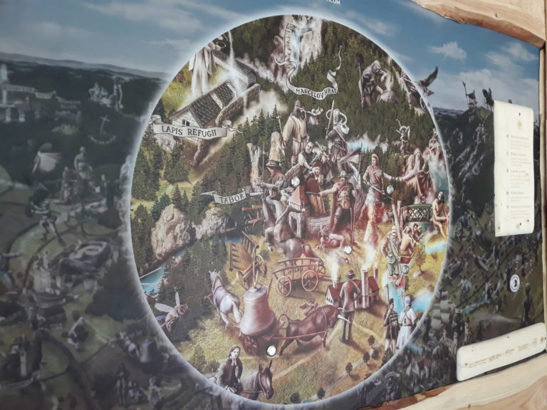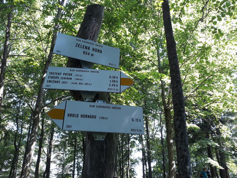 Informačná tabuľa s dekoratívnym prvkom na Zelenej hore v Slovenskom raji. Foto: SITA/Mária Frisová.