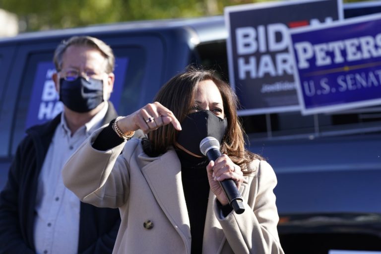 Demokratická kandidátka na viceprezidentku USA Kamala Harrisová reční na volebnom mítingu. Southfield, Michigan. 3. november 2020 Foto: Archívne, AP Photo/Carlos Osorio