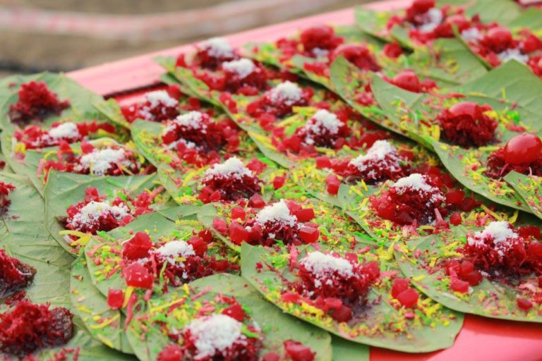 Dezertík - Paan - chutí niečo ako mentol a pelendrek dokopy - svieža pochúťka po jedle — v New Delhi, India. www.cestujemespolu.com/