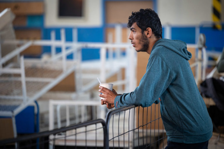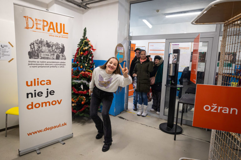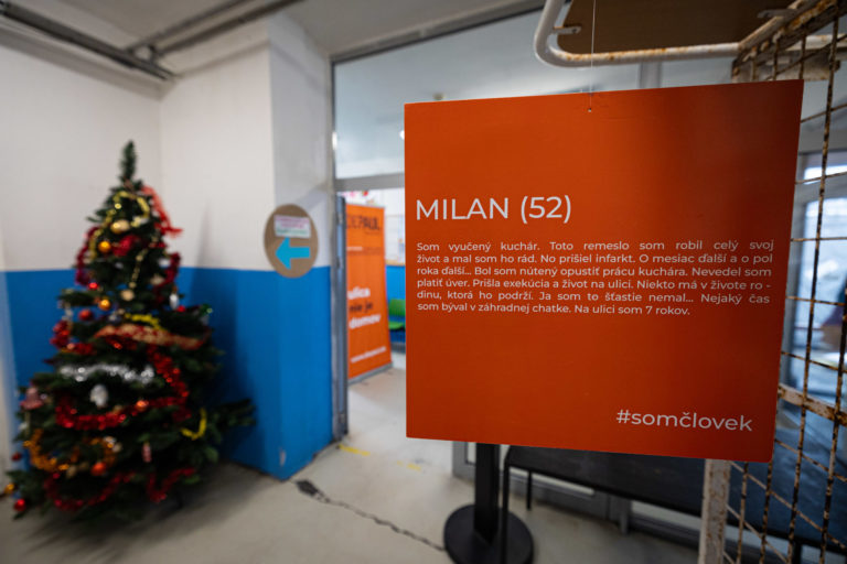 Účastník počas charitatívneho podujatia Doma dobre v priestoroch Nocľahárne sv. Vincenta de Paul v Bratislave. Bratislava, 10. december 2023. Foto: SITA/Jana Birošová