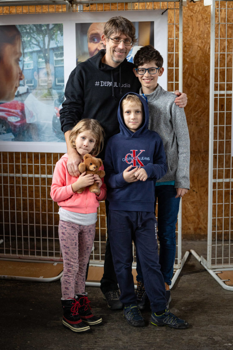 Riaditeľ organizácie Depaul Slovensko Jozef Kákoš so svojimi deťmi počas charitatívneho podujatia Doma dobre v priestoroch Nocľahárne sv. Vincenta de Paul v Bratislave. Bratislava, 10. december 2023. Foto: SITA/Jana Birošová