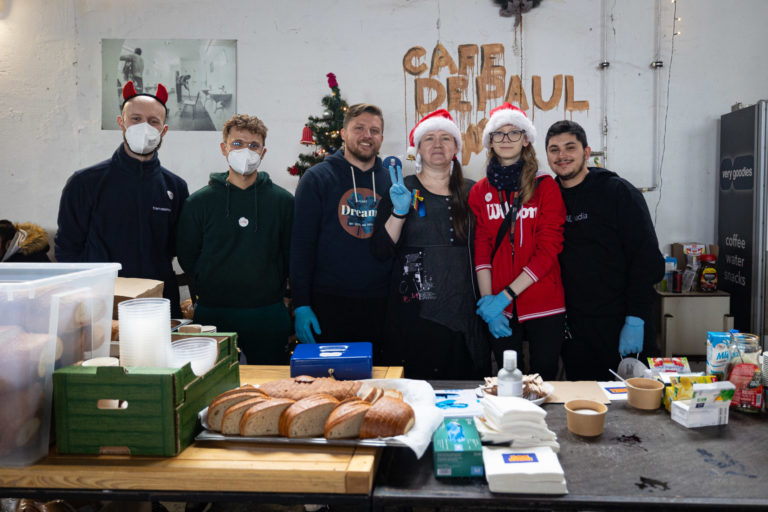 Dobrovoľníci počas charitatívneho podujatia Doma dobre v priestoroch Nocľahárne sv. Vincenta de Paul v Bratislave. Bratislava, 10. december 2023. Foto: SITA/Jana Birošová