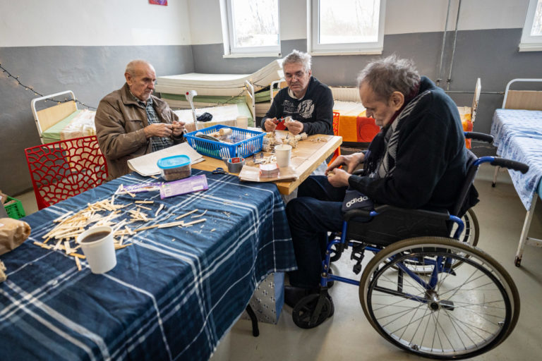 Výroba podpaľovačov počas charitatívneho podujatia Doma dobre v priestoroch Nocľahárne sv. Vincenta de Paul v Bratislave. Bratislava, 10. december 2023. Foto: SITA/Jana Birošová