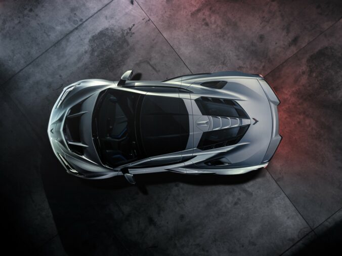 Pohľad zhora na Chevrolet Corvette ZR1X z roku 2026 v striebornej metalíze Blade Silver. Foto: Chevrolet