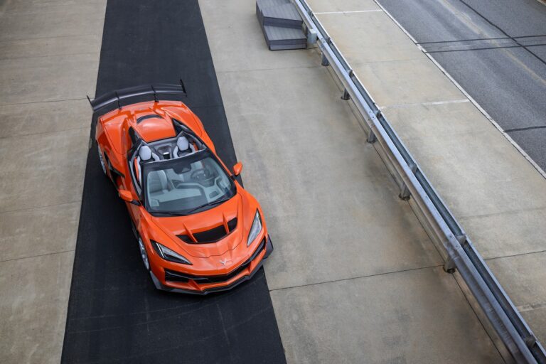 Pohľad zhora na Corvette ZR1X Cabrio s balíkom ZTK Performance Package vo farbe Sebring Orange Tintcoat. Foto: Chevrolet