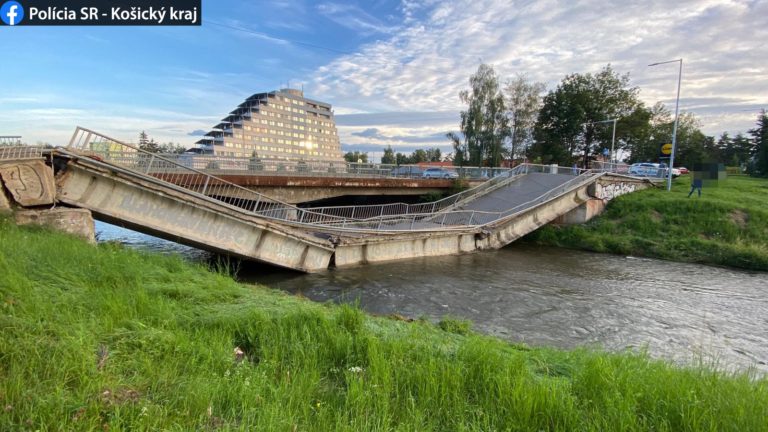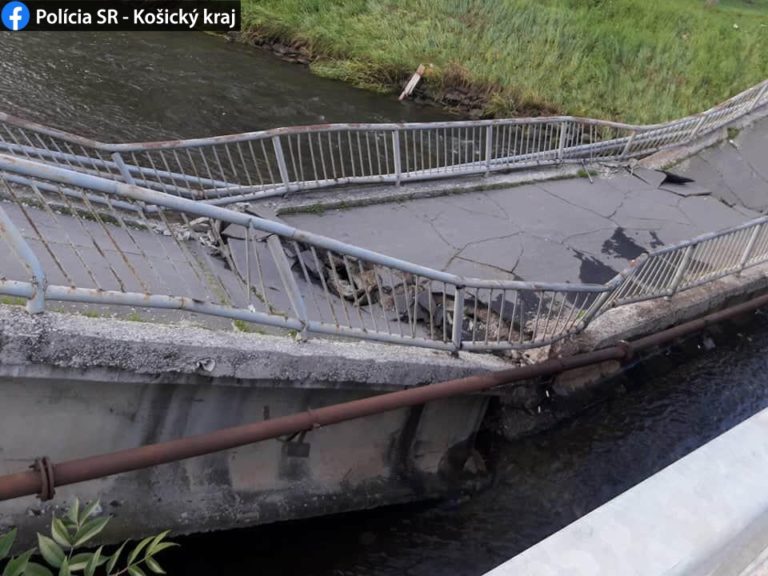 Chodníkový most pre chodcov a cyklistov v Spišskej Novej Vsi na Starosaskej ulici sa prepadol. 31. júla 2020 Foto: www.facebook.com