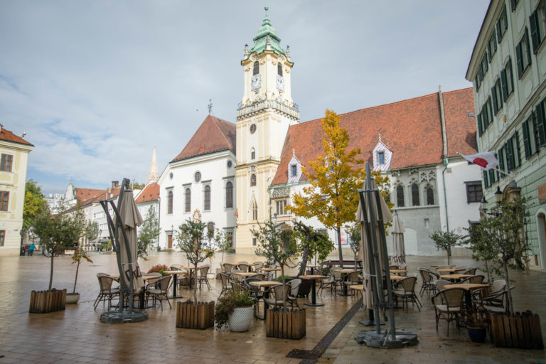 Ulice Starého Mesta v Bratislave počas čiastočného lockdownu v súvislosti so zhoršujúcou sa situáciou s ochorením COVID-19 spôsobeným koronavírusom. Bratislava 24. október 2020. Foto: SITA/Jana Birošová