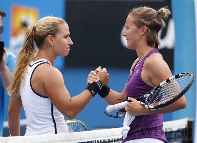 Belgická tenistka Kirsten Flipkensová (vpravo) gratuluje Dominike Cibulkovej k víťazstvu po zápase prvého kola Australian Open. Melbourne, 20. január 2015. Foto: SITA/AP