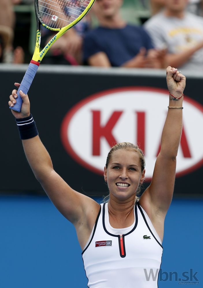 Slovenská tenistka Dominika Cibulková počas zápasu prvého kola na Australian Open, v ktorom porazila Belgičanku Kirsten Flipkensovú 3:6, 6:3, 6:1. Melbourne, 20. január 2015. Foto: SITA/AP