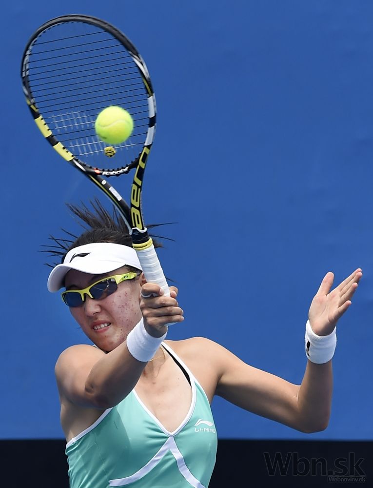 Číňanka Čeng saj-saj počas zápasu prvého kola Australian Open, v ktorom prehrala so slovenskou tenistkou Danielou Hantuchovou 4:6, 4:6 . Melbourne, 20. január 2015. Foto: SITA/AP