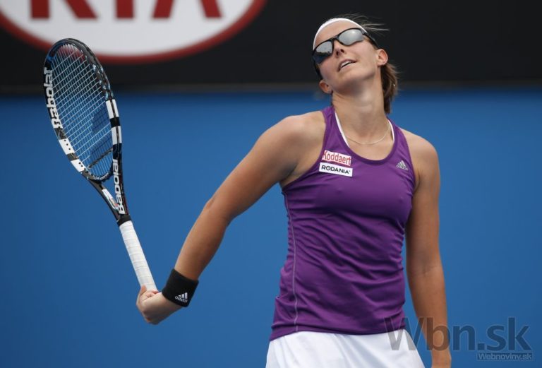 Belgická tenistka Kirsten Flipkensová počas zápasu prvého kola na Australian Open, v ktorom prehrala so Slovenkou Dominikou Cibulkovou 6:3, 3:6, 1:6. Melbourne, 20. január 2015. Foto: SITA/AP