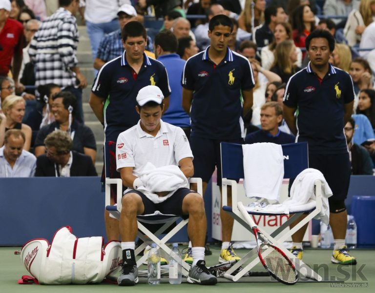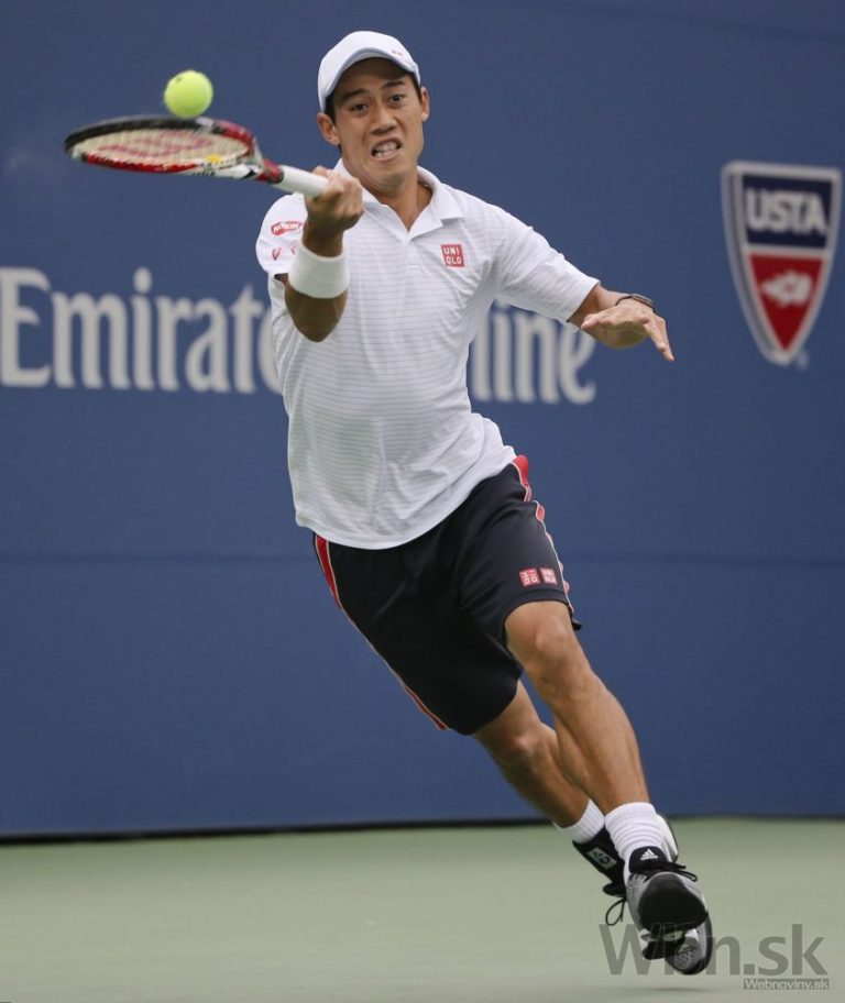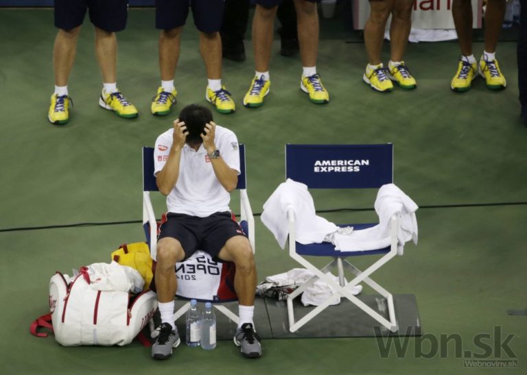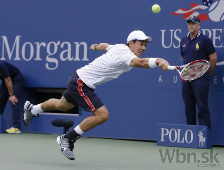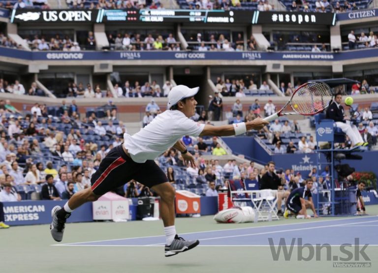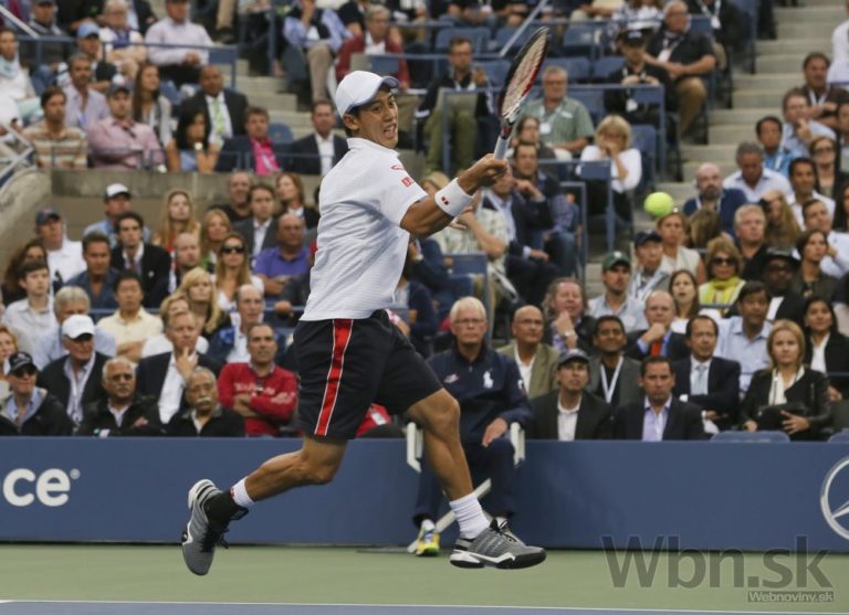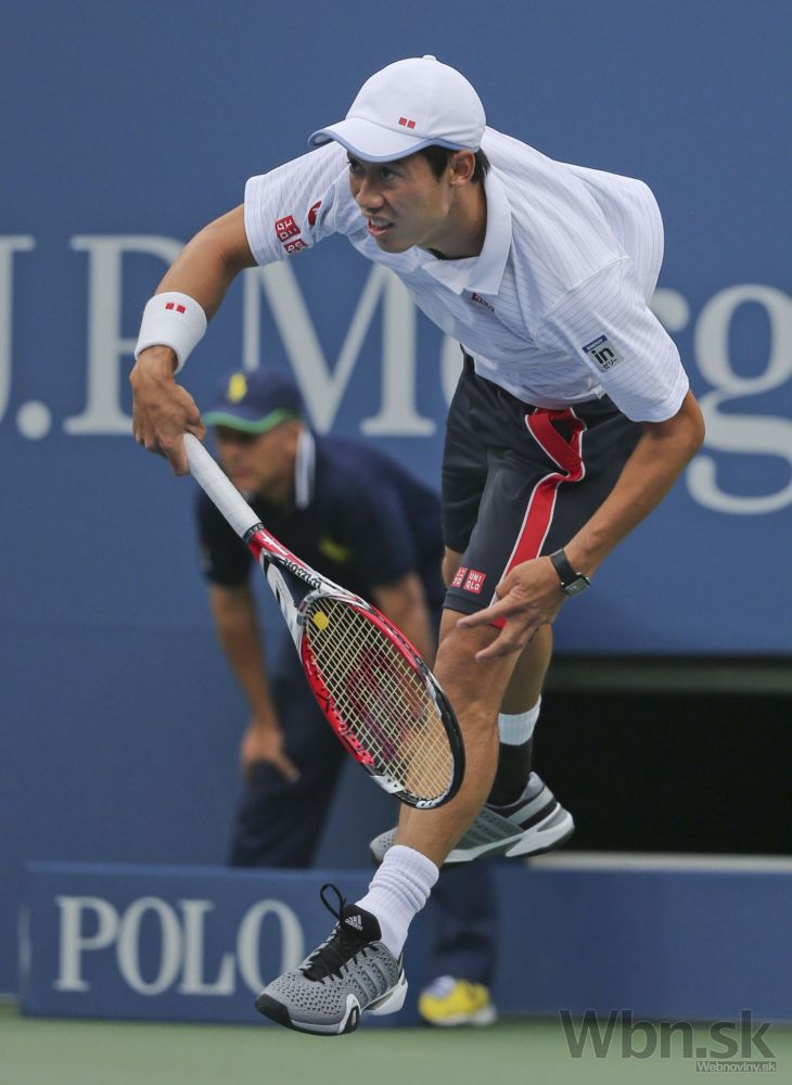 Japonský tenista Kei Nišikori počas finálového zápasu na US Open, v ktorom bojoval o titul s Chorvátom Marinom Čiličom. Foto: SITA/AP