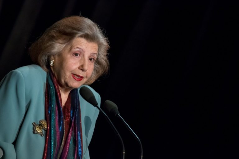 Prekladateľka Michaela Jurovská si preberá ocenenie v kategórii AICT - Medzinárodnej asociácie divadelných kritikov 2015/2016 počas 21. ročníka divadelných ocenení sezóny DOSKY 2016. Bratislava, 18. september 2016. Foto: SITA/Marek Mrviš