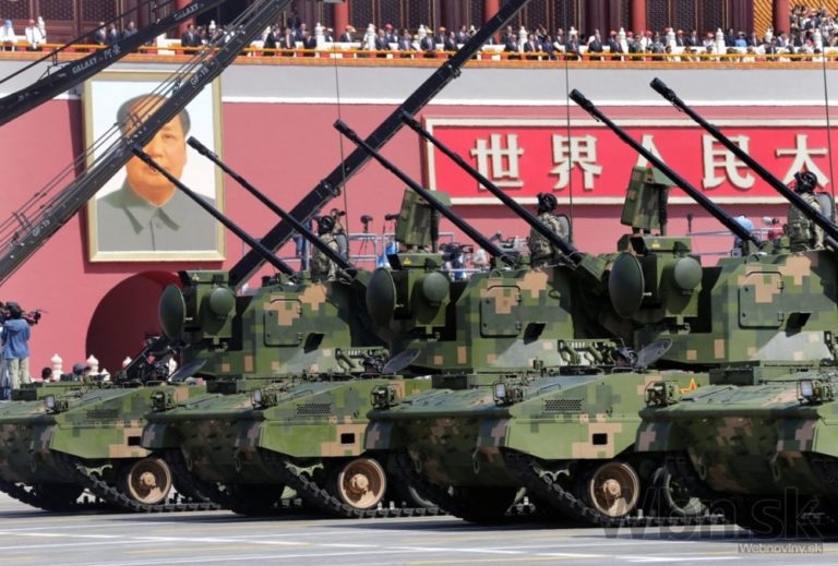 Veľkolepú scénu, ktorú usporiadali v Pekingu pri príležitosti porážky Japonska v druhej svetovej vojne tvorilo vyše 12 000 vojakov, 500 kusov bojovej techniky a 200 lietadiel rôzneho typu. Foto: SITA/AP