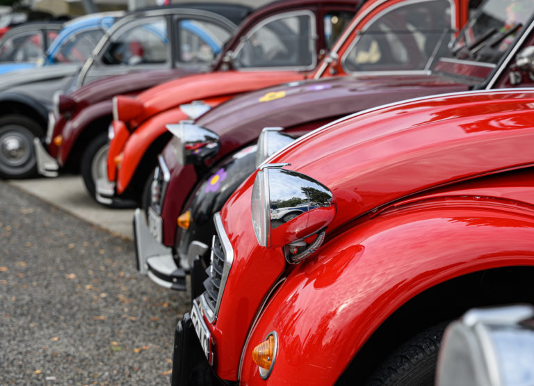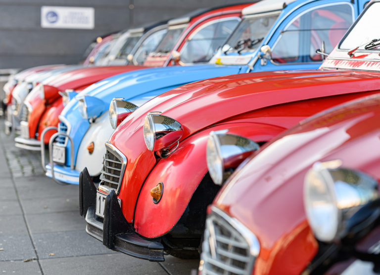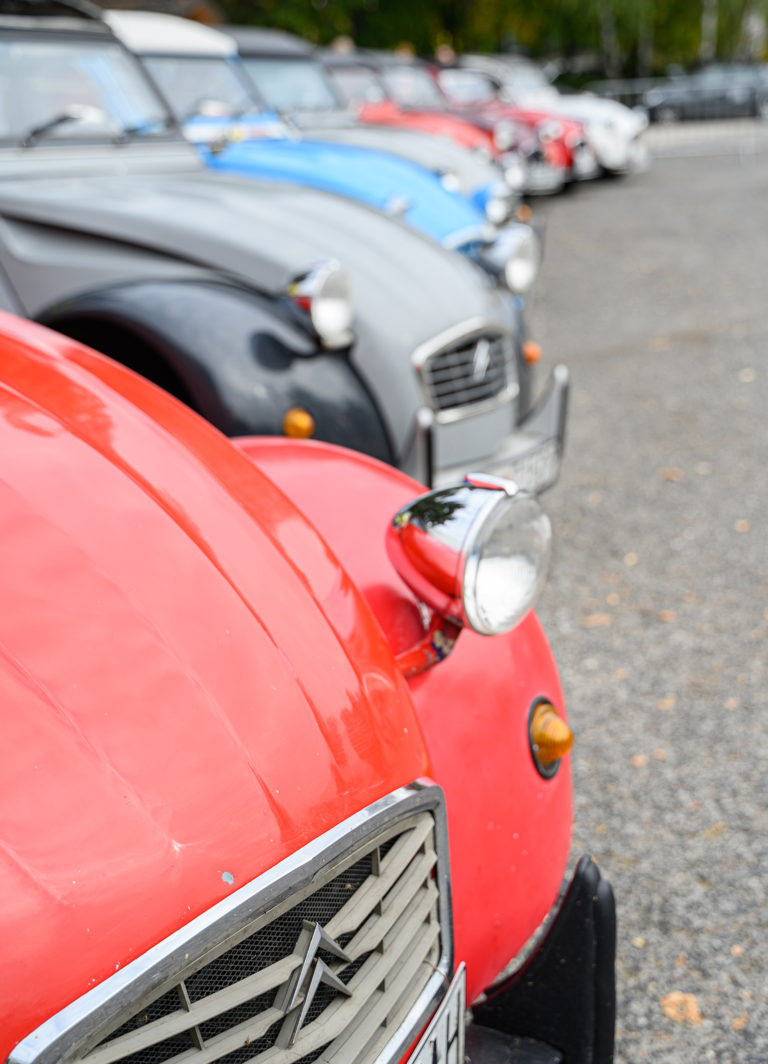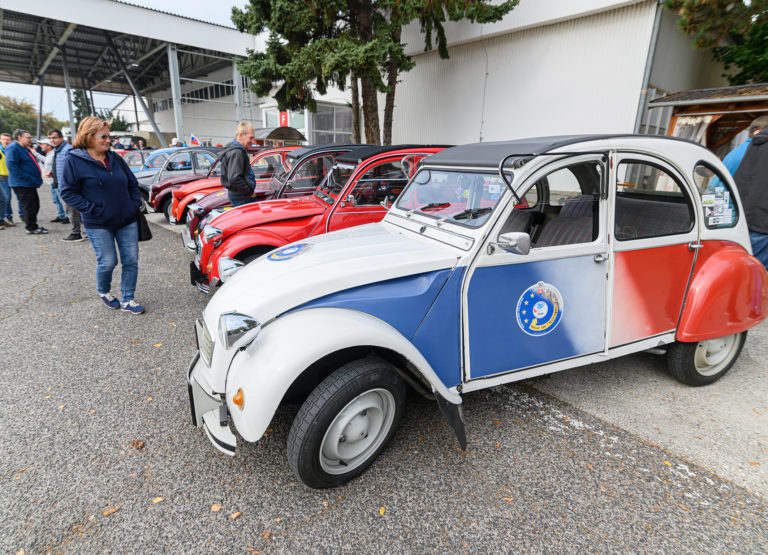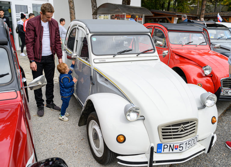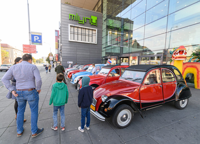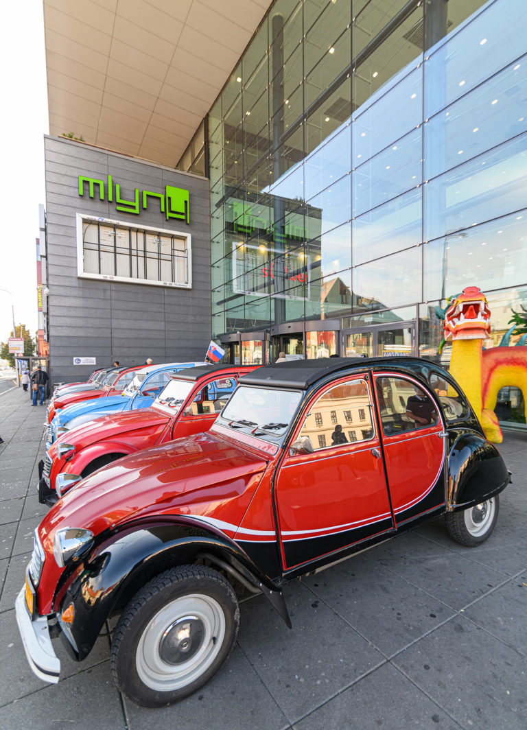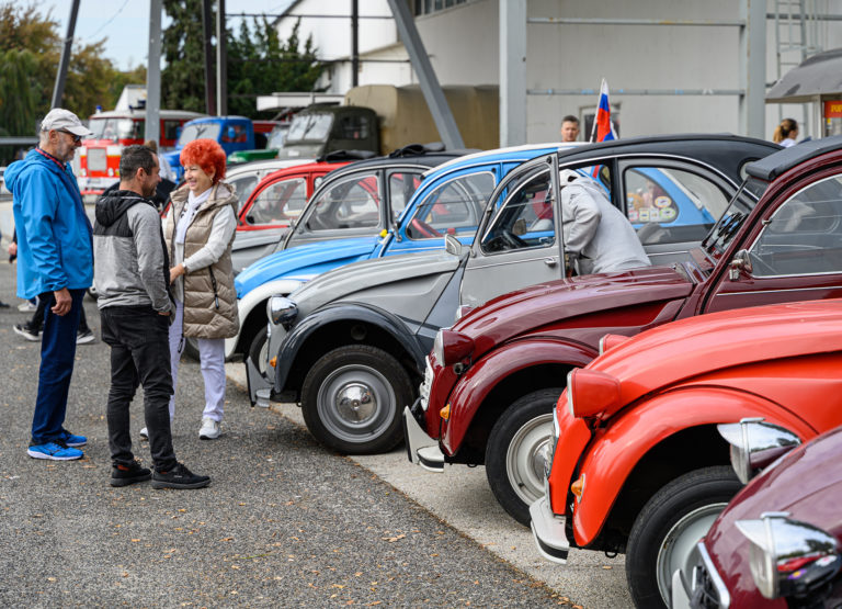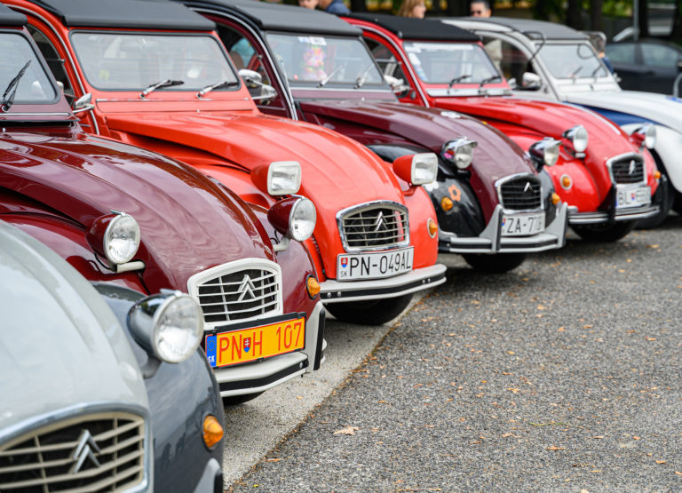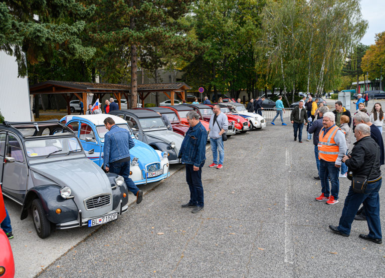 Citroën "kačice", ktoré predstavil Citroën 2CV club Slovakia, pred obchodným centrom Mlyny v rámci výstavy Autosalón Autoshow 2022 v Nitre. Nitra, 16. október 2022. Foto: SITA/Martin Havran.