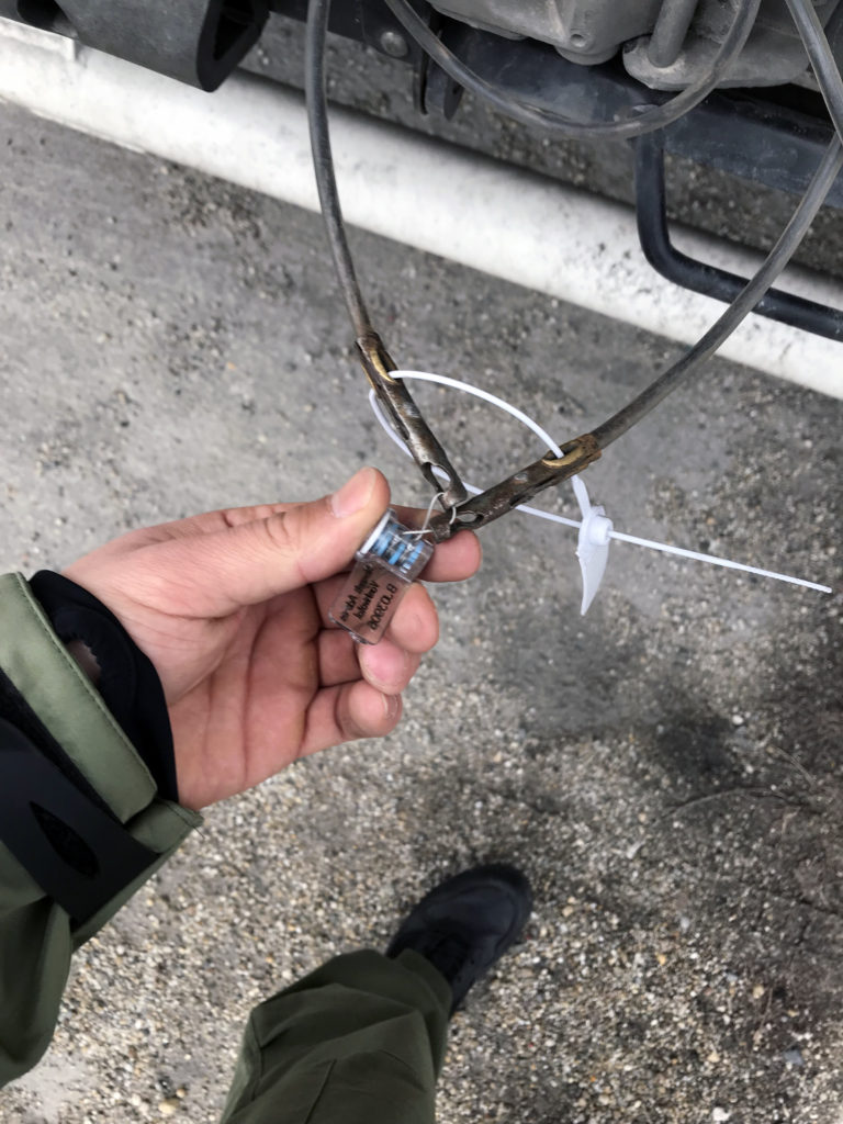 Colníci pri odplombovaní úložného priestoru kamiónu našli colníci okrem 82 sudov so solenými bravčovými črevami aj tri osoby, mladistvých mužov z Afganistanu, 2. marec 2019. Foto: SITA/FS SR