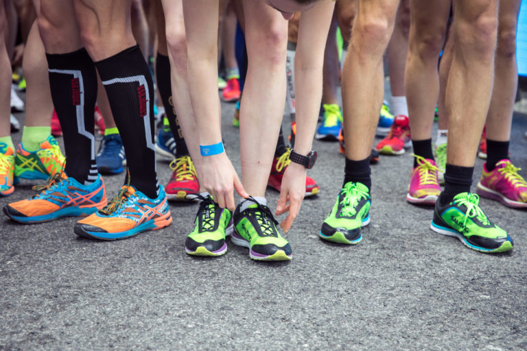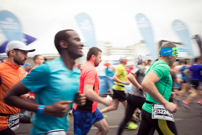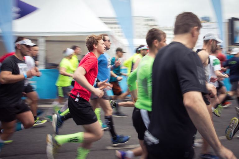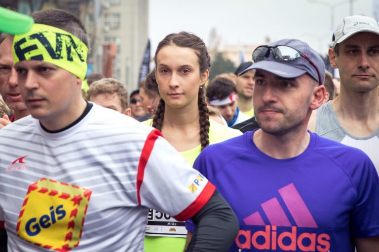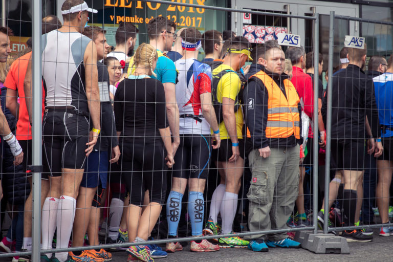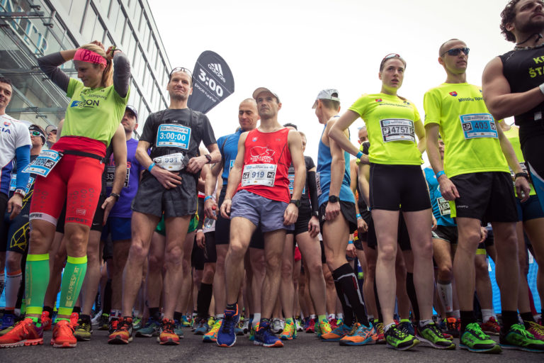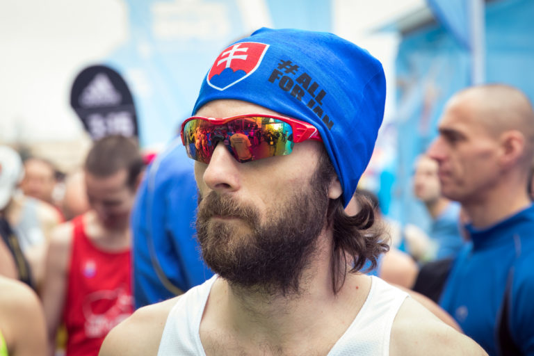 Bežci sa pripravujú na štart 13. ročníka bratislavského mestského maratónu - ČSOB Bratislava Marathon. Bratislava, 8. apríl 2018. Foto: SITA/Diana Černáková.