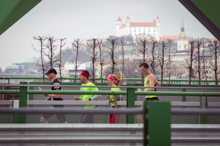 Bežci na trati počas 13. ročníka bratislavského mestského maratónu - ČSOB Bratislava Marathon 2018. Bratislava, 8. apríl 2018. Foto: SITA/Diana Černáková.
