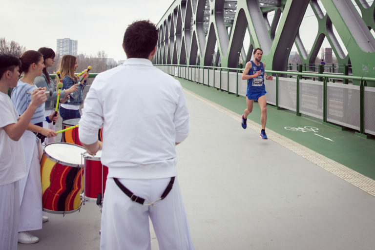 Atmosféra na trati počas 13. ročníka bratislavského mestského maratónu - ČSOB Bratislava Marathon 2018. Bratislava, 8. apríl 2018. Foto: SITA/Diana Černáková.