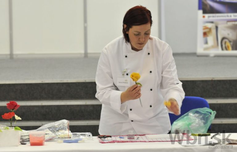 V Trenčíne sa od 16. mája do 18. mája koná celoslovenská cukrárska výstava Torty a svet pečenia. Výstava ponúka predaj a prezentáciu cukrárskych a pekárskych surovín, pomôcok na pečenie a zdobenie. Na snímke: Cukrárka vyrába marcipánové ruže. Trenčín, 16. máj 2014. Foto: SITA/Tomáš Somr