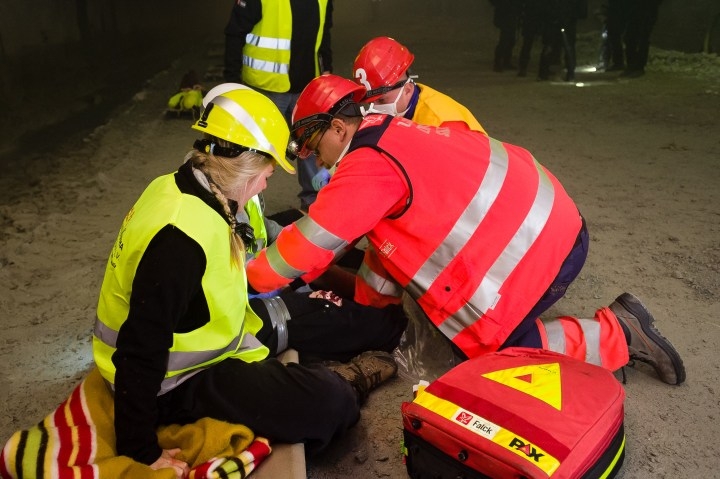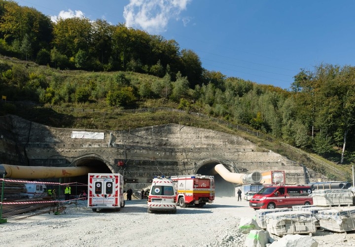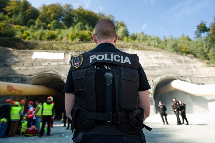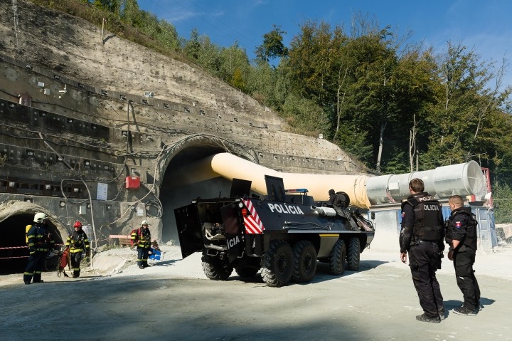 Cvičenie záchranných zložiek pri likvidácii následkov udalosti s hromadným postihnutím osôb na stavbe pri východnom portáli diaľničného tunela Višňové na úseku diaľnice D1 v oblasti Dubná Skala. Vrútky, 30. september 2016.