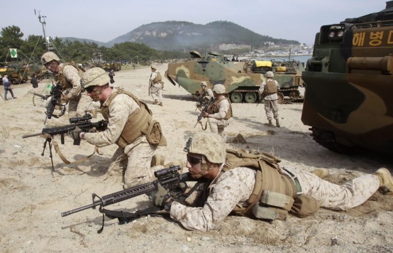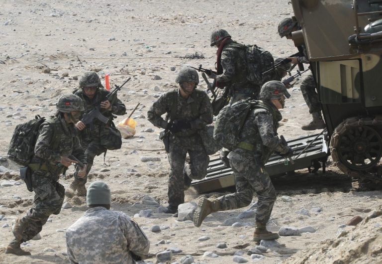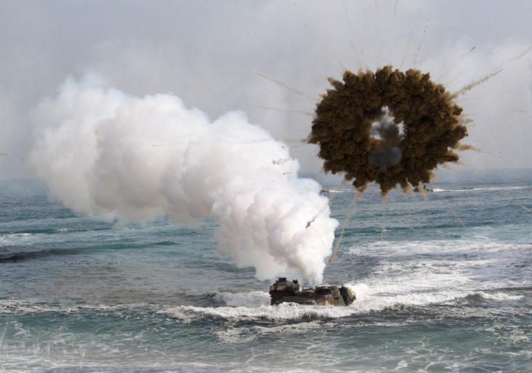 Severná Kórea odštartovala v pondelok cvičnú ostrú streľbu zo svojho západného pobrežia do Žltého mora. Foto: SITA/AP