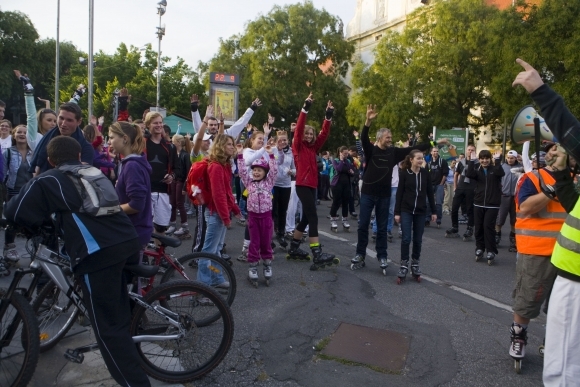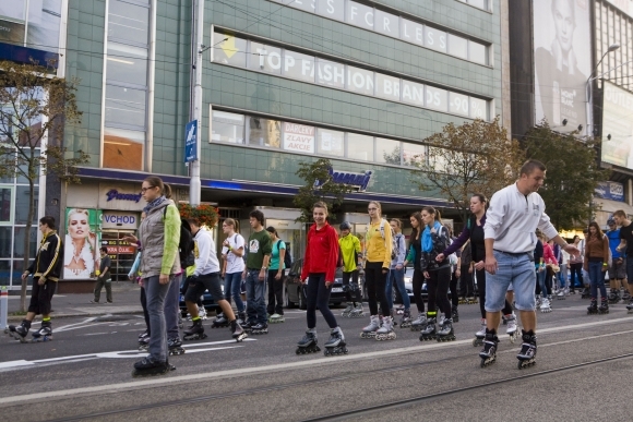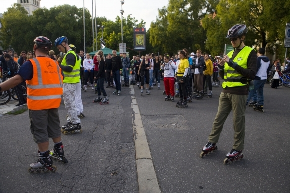 Cyklisti a korčuliari počas štartu a jazdy mestom v rámci Európskeho svetového dňa bez áut. Bratislava, 22. september 2013. Foto: SITA/Tomáš Bokor