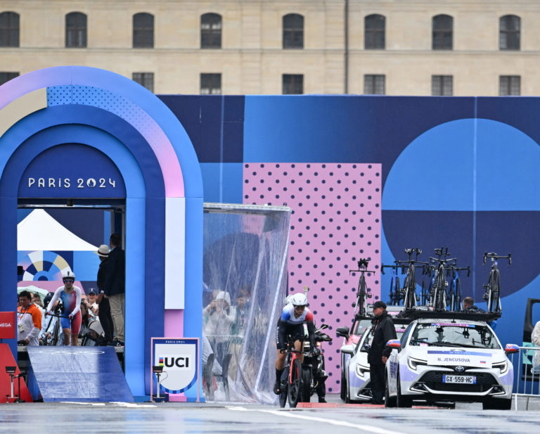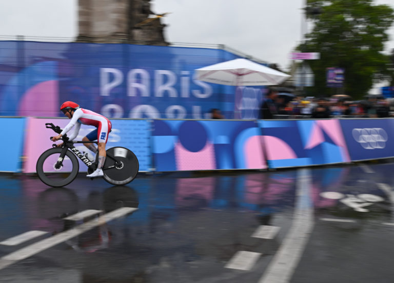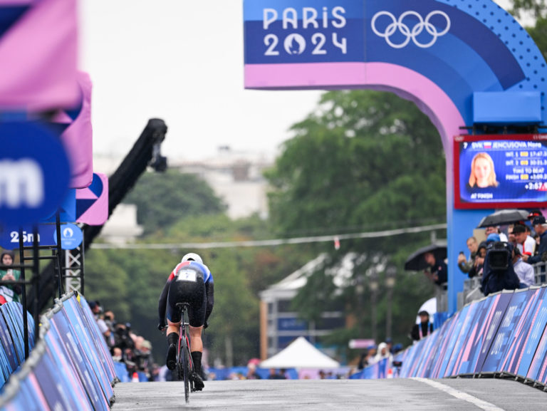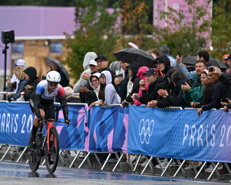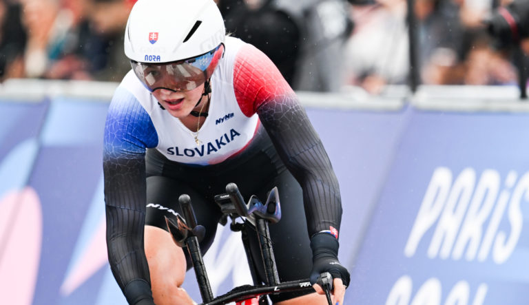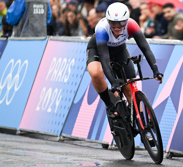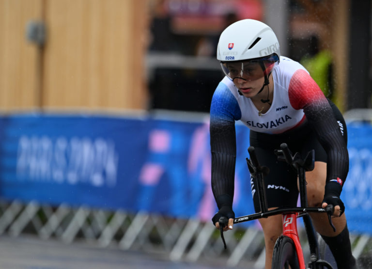 Slovenská cyklistka Nora Jenčušová počas individuálnej časovky žien v rámci XXXIII. letných olympijských hier 2024 v Paríži. Paríž, 27. júl 2024. Foto: SITA/Martin Medňanský