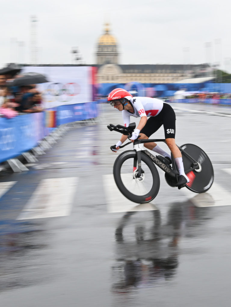Švajčiarska cyklistka Elena Hartmann počas individuálnej časovky žien v rámci XXXIII. letných olympijských hier 2024 v Paríži. Paríž, 27. júl 2024. Foto: SITA/Martin Medňanský