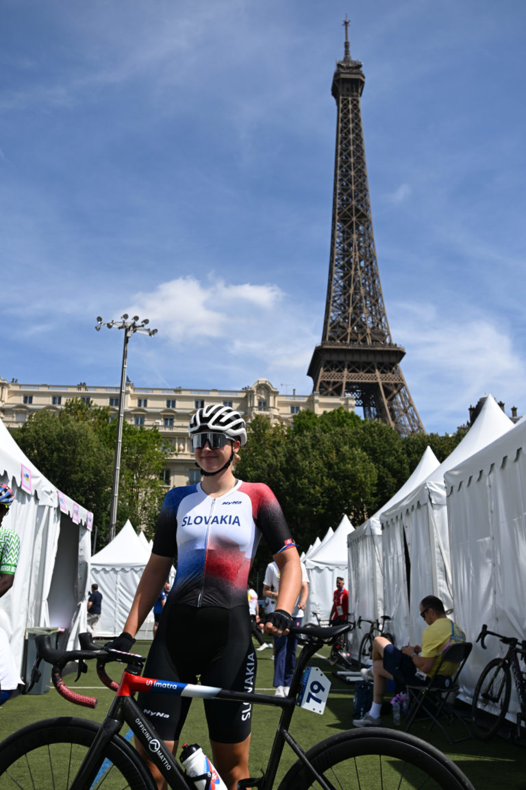 Slovenská cyklistka Nora Jenčušová na štarte pretekov v cestnej cyklistike žien na 158 km v rámci XXXIII. olympijských hier 2024 v Paríži. Paríž, 4. august 2024. Foto: SITA/Martin Medňanský