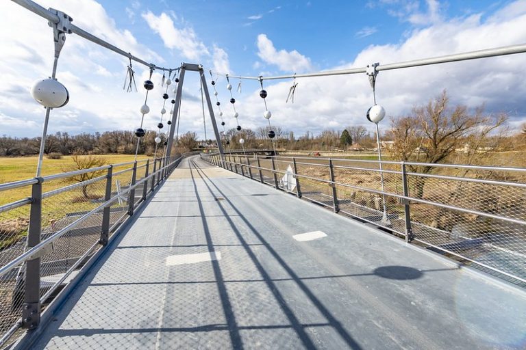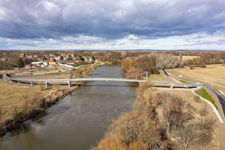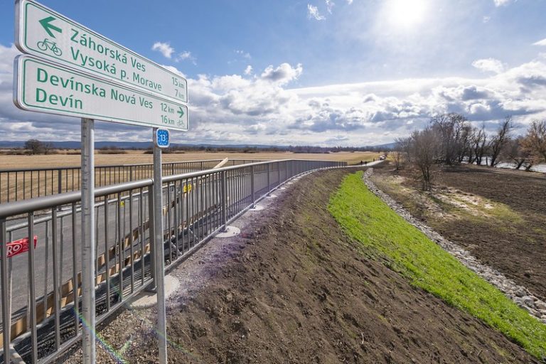 Cyklomost VysoMarch medzi Vysokou pri Morave a rakúskou obcou Margegg, na ktorom dokončujú drobné stavebné práce bude slávnostne otvorený v máji 2022. Bratislava, 18. marec 2022. Foto: SITA/BSK