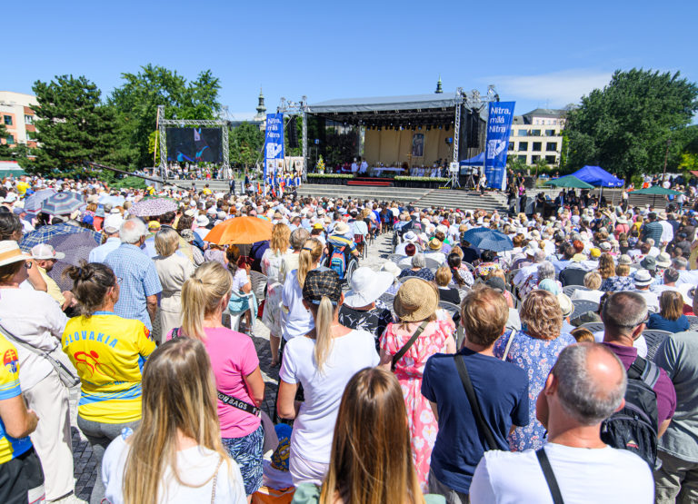 Atmosféra počas slávnostnej svätej omše pri príležitosti Národnej púte k sv. Cyrilovi a Metodovi. Nitra 5. júl 2024. Foto: SITA/Martin Havran.