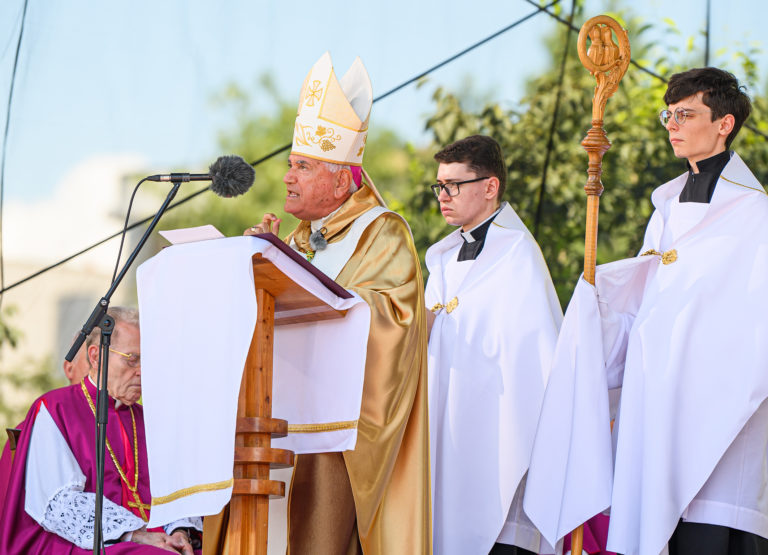 po skončení slávnostnej svätej omše pri príležitosti Národnej púte k sv. Cyrilovi a Metodovi. Nitra 5. júl 2024. Foto: SITA/Martin Havran.