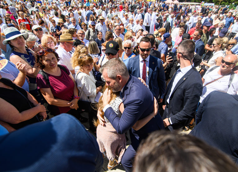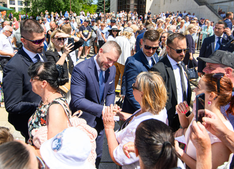 Prezident SR Peter Pellegrini po skončení slávnostnej svätej omše pri príležitosti Národnej púte k sv. Cyrilovi a Metodovi. Nitra 5. júl 2024. Foto: SITA/Martin Havran.
