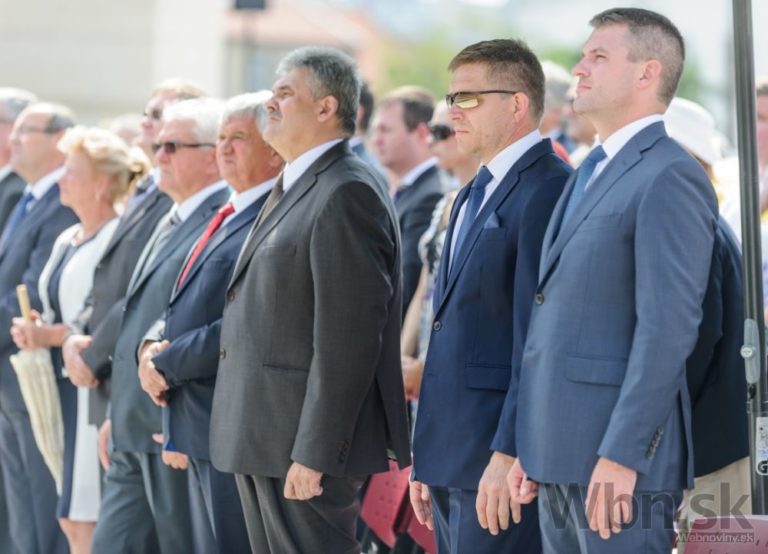 Sprava: Predseda NR SR Peter Pellegríni, premiér Robert Fico, primátor mesta Nitra Jozef Dvonč a minister práce sociálnych vecí a rodiny SR Ján Richter počas Cyrilo-metodskej národnej púte v Nitre. Cyrilo-metodská národná púť je vyvrcholením duchovného programu každoročných Cyrilo-metodských slávností v Nitre. Nitra, 5. júl 2015. Foto: SITA/Martin Havran