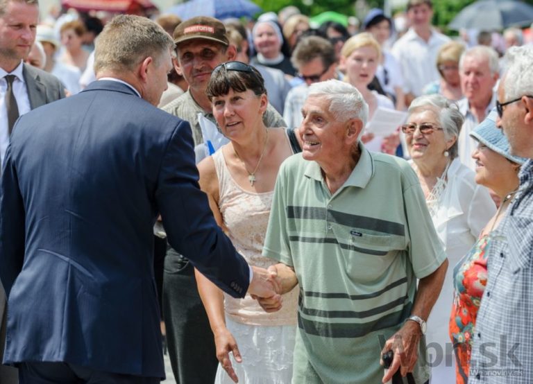Premiér Robert Fico (vľavo) po skončení Cyrilo-metodskej národnej púte v Nitre. Cyrilo-metodská národná púť je vyvrcholením duchovného programu každoročných Cyrilo-metodských slávností v Nitre. Nitra, 5. júl 2015. Foto: SITA/Martin Havran