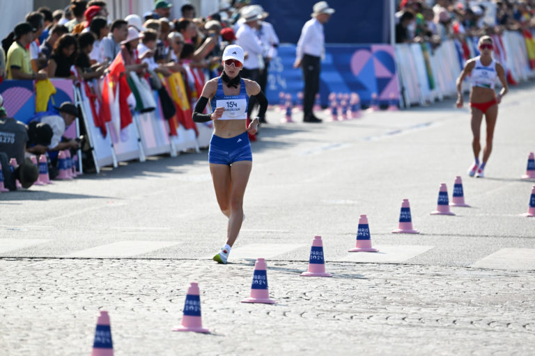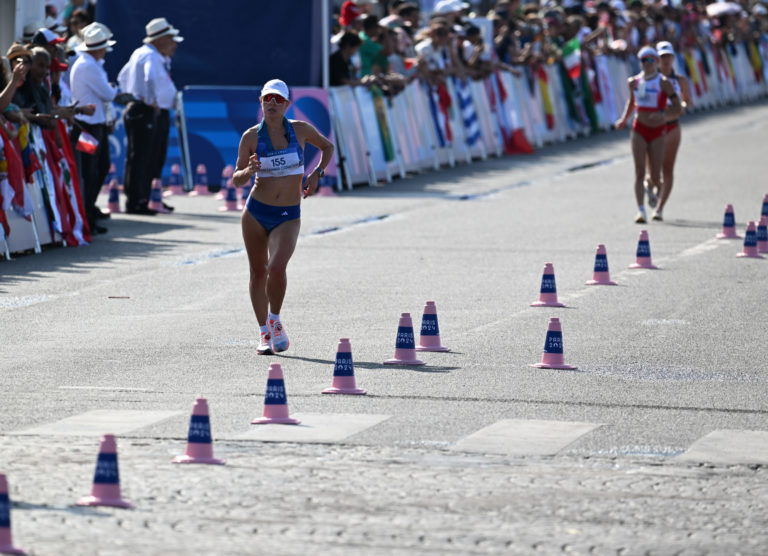 Slovenská atlétka Mária Katerinka Czáková (vpravo) počas pretekov na 20 km chôdza ženy v rámci XXXIII. letných olympijských hier 2024 v Paríži. Paríž, 1. august 2024. Foto: SITA/Martin Medňanský