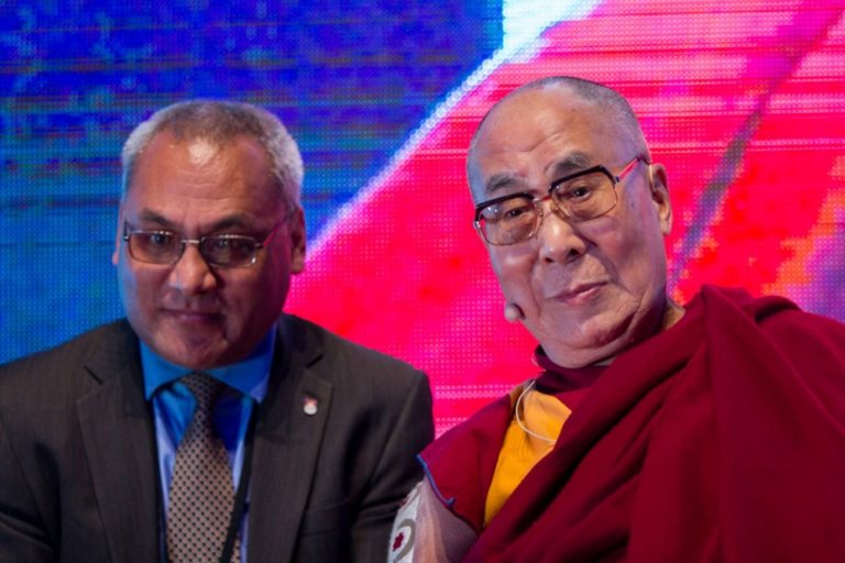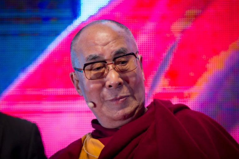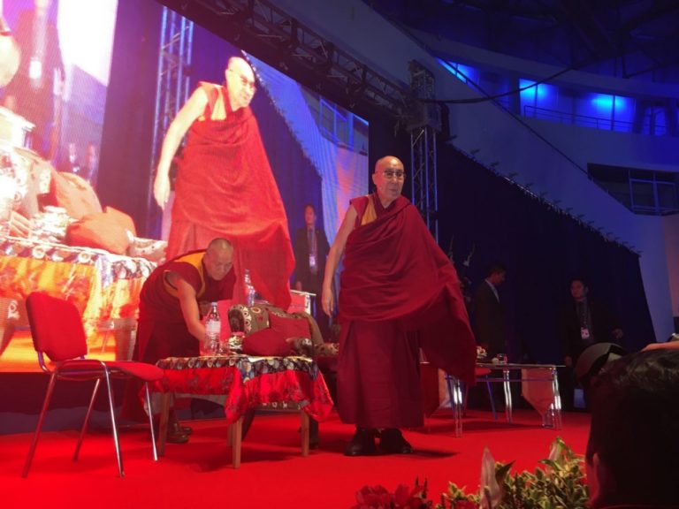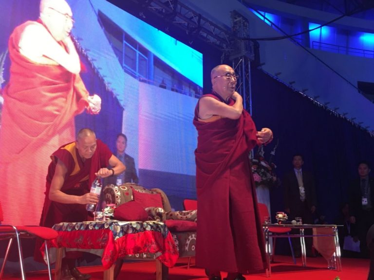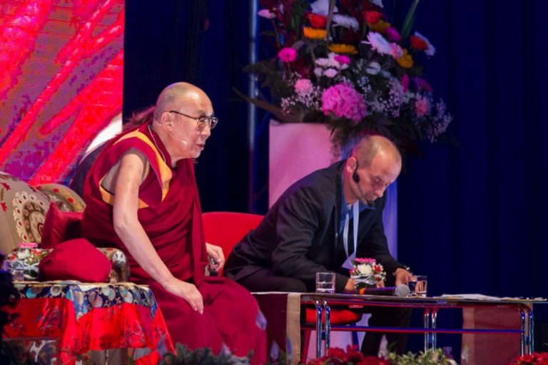 Dalajláma počas svojej prednášky v bratislavskej Aegon Aréne. Foto: Mimi Šramová