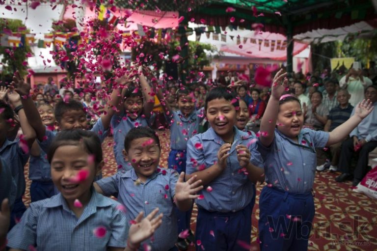 Tibetský duchovný vodca dalajláma oslávil svoje 80. narodeniny na pôde USA, kde sa v súčasnosti nachádza na trojdňovom summite o súcite. Nepál, 6. júla 2015. Foto: SITA/AP