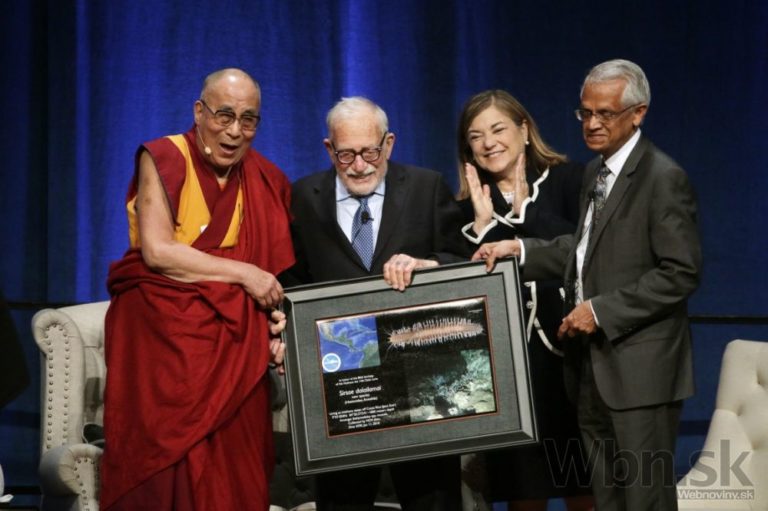 Tibetský duchovný vodca dalajláma oslávil svoje 80. narodeniny na pôde USA, kde sa v súčasnosti nachádza na trojdňovom summite o súcite. Kalifornia, 7. júla 2015. Foto: SITA/AP