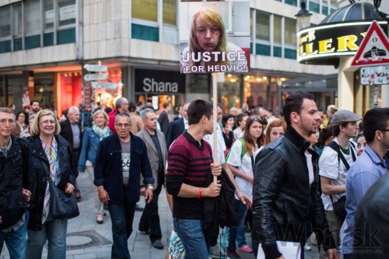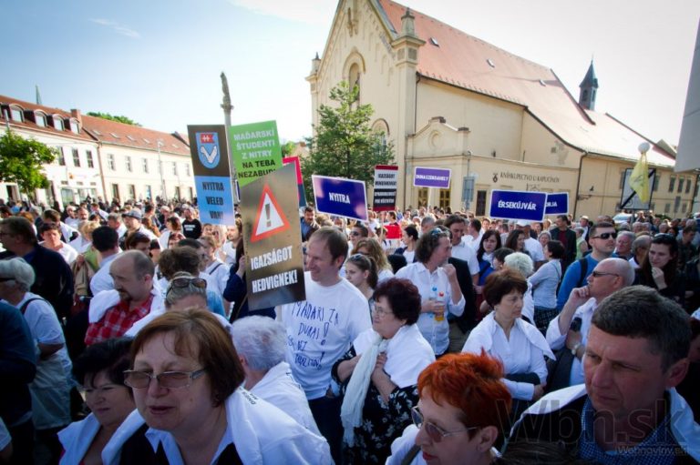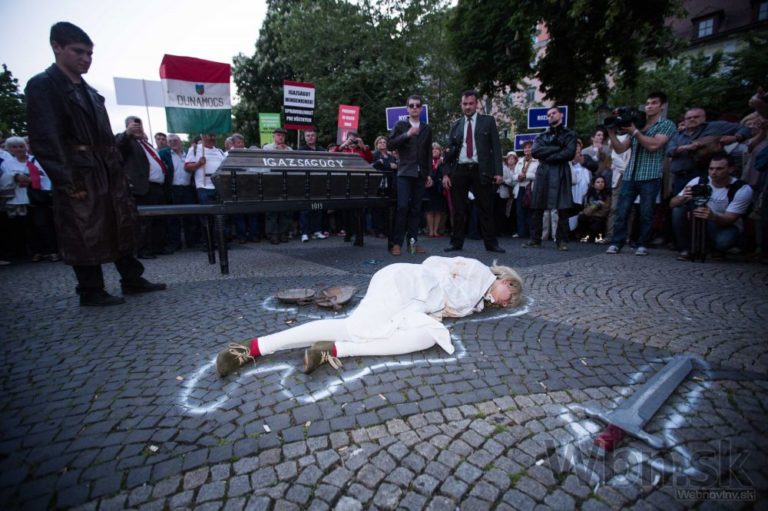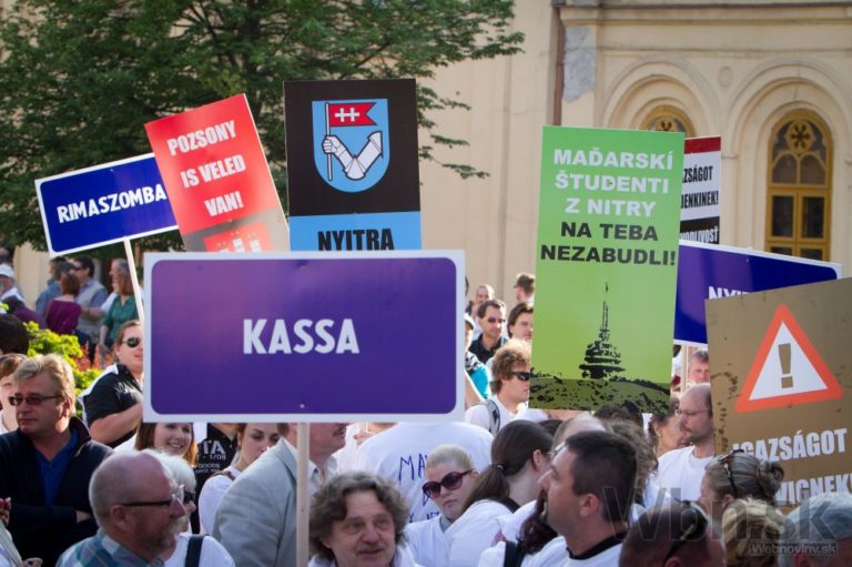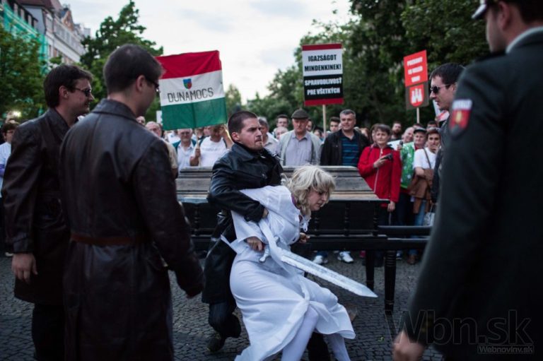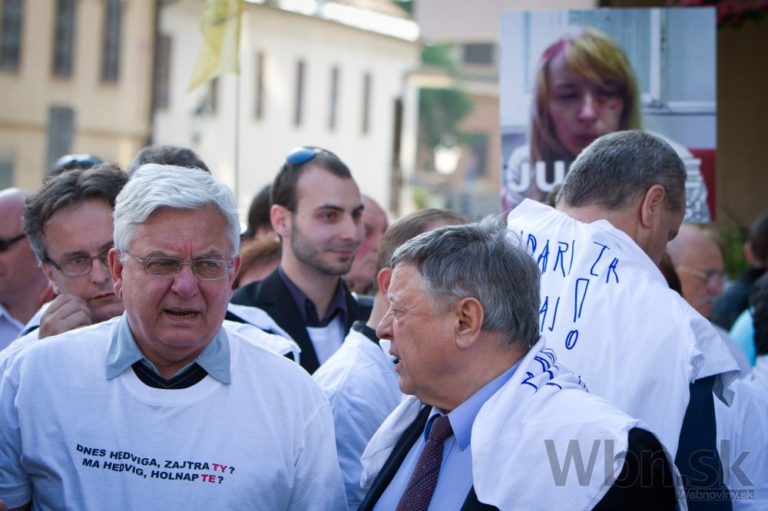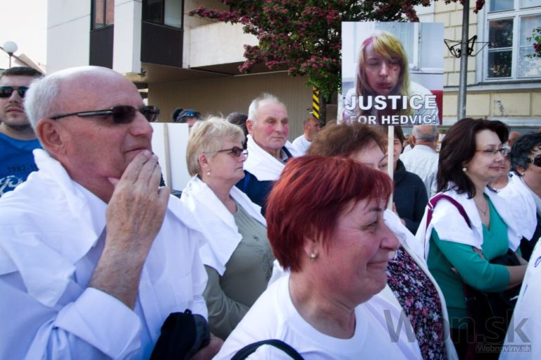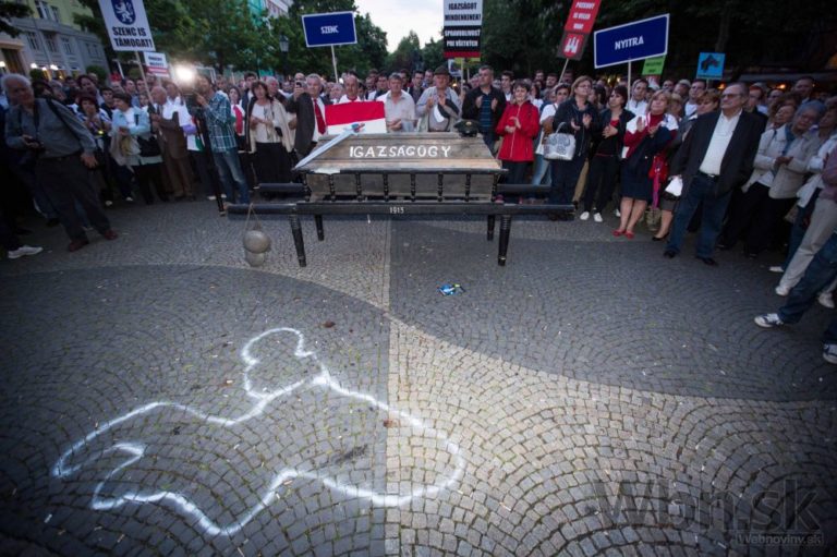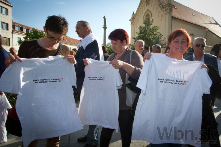 Organizácia Okrúhly stôl Maďarov na Slovensku zorganizovala demonštráciu na podporu Hedvigy Malinovej Žákovej. Žiadali skutočnú spravodlivosť pre Hedvigu. Hlavným mottom demonštrácie bol slogan \\\\\\\\\\\\\\\\ Foto: SITA/Ľudovít Vaniher