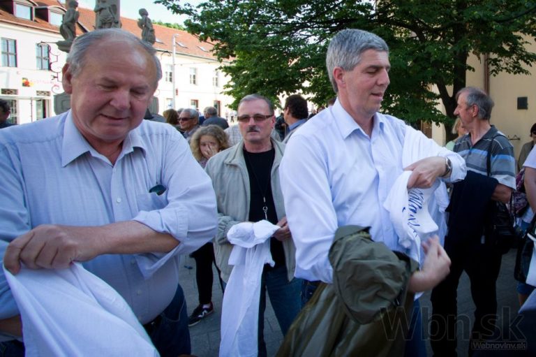 Organizácia Okrúhly stôl Maďarov na Slovensku zorganizovala demonštráciu na podporu Hedvigy Malinovej Žákovej. Žiadali skutočnú spravodlivosť pre Hedvigu. Hlavným mottom demonštrácie bol slogan Foto: SITA/Ľudovít Vaniher