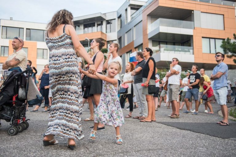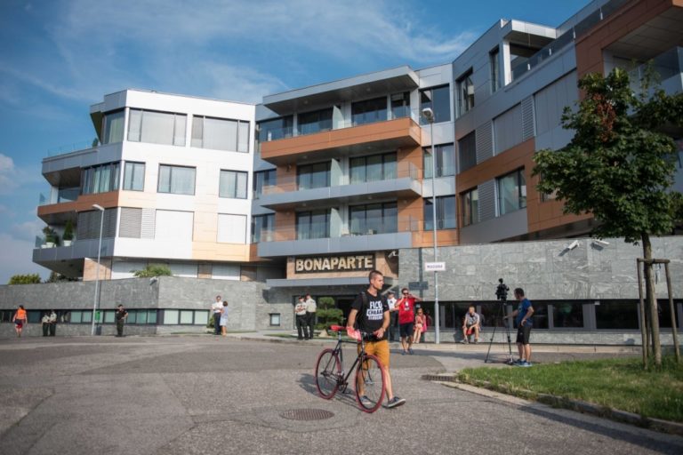 Pohľad na bytový komplex Bonaparte pred Protestom proti mafiánom vo vláde. Protest zorganizovali opozičné strany SaS a OĽaNO. Bratislava, 25. júl 2016. Foto: SITA/Monika Zaťková