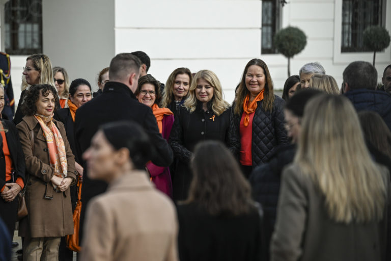 Prezidentka SR Zuzana Čaputová (uprostred) pri príležitosti Medzinárodného dňa boja proti násiliu na ženách v Prezidentskom paláci v Bratislave. Bratislava, 24. november 2023. Foto: SITA/Milan Illík