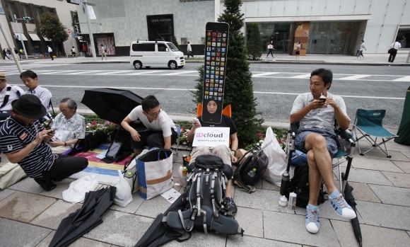 Tokijčania pri dlhom čakaní na nový iPhone. Foto: SITA/AP