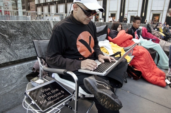 Programátor aplikácií Hazen Sayer je prvý v rade na kúpu iPhone 5 pred newyorskou predajňou na 5th Avenue. Foto: SITA/AP