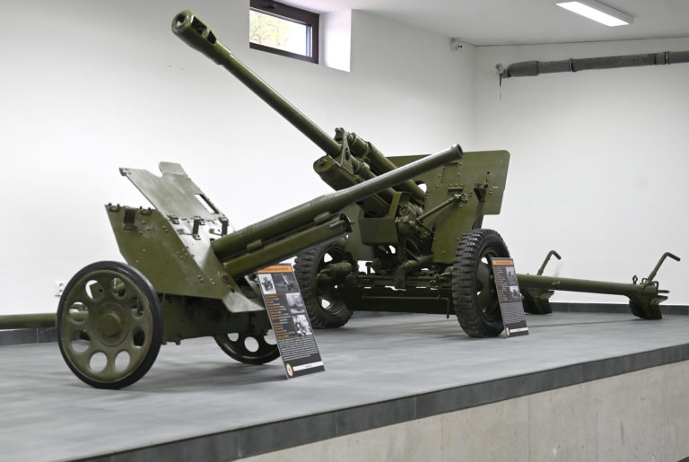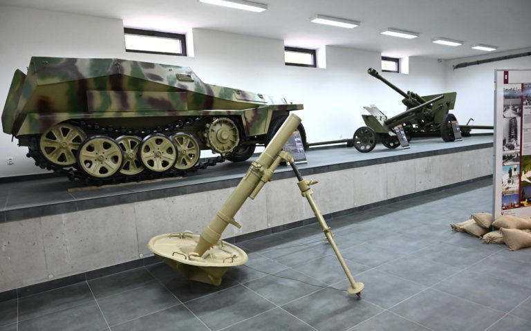 Expozícia Vojenského historického múzea v interiéri zrekonštruovanej Vyhliadkovej veže na Dukle v okrese Svidník počas osláv Dňa hrdinov Karpatsko-duklianskej operácie. Vyšný Komárnik, 6. október 2021. Foto: SITA/Viktor Zamborský