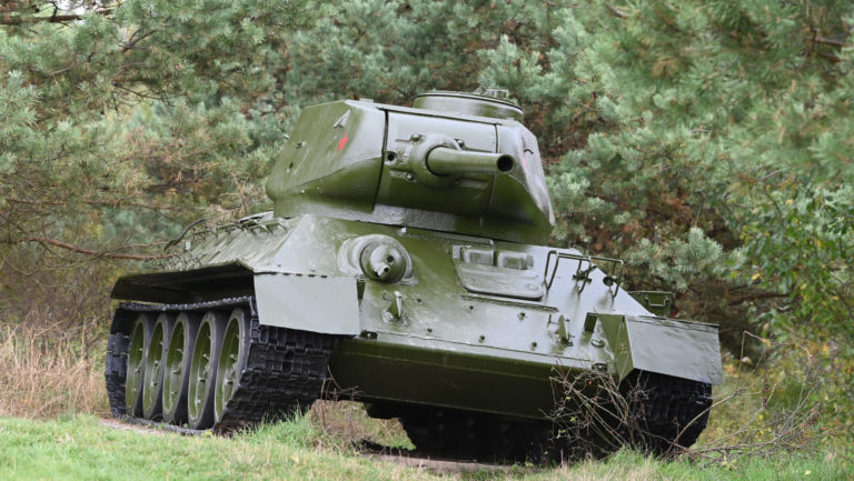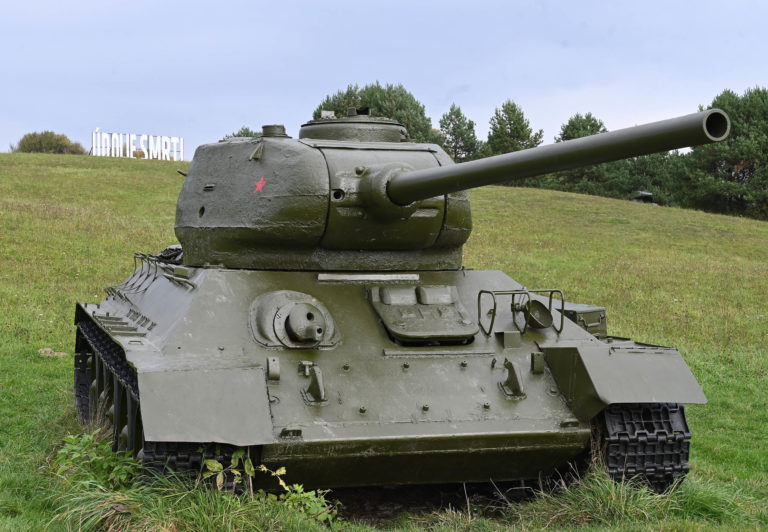 Historický tank typu Stredný tank T-34/85 na území Údolia smrti v okrese Svidník počas osláv Dňa hrdinov Karpatsko-duklianskej operácie. Údolie smrti, 6. október 2021. Foto: SITA/Viktor Zamborský