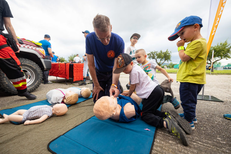 Resuscitácia figurín počas Dňa Ministerstva vnútra (MV) SR aj pre najmenších v Bratislave. Bratislava, 10. jún 2023. Foto: SITA/Jana Birošová