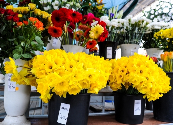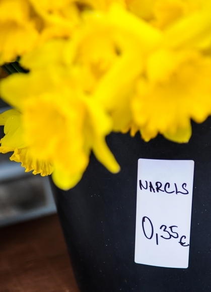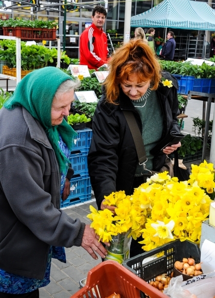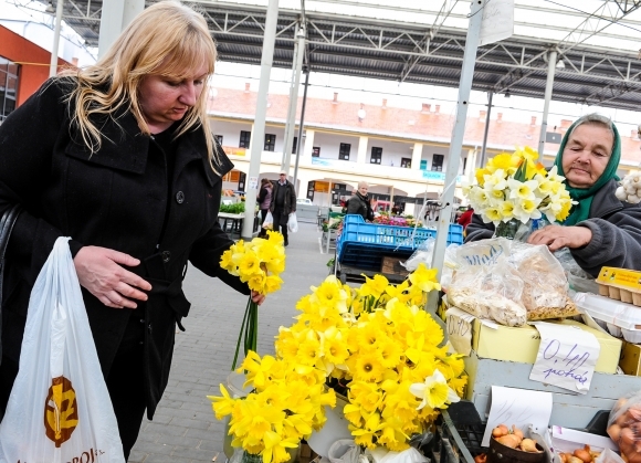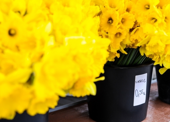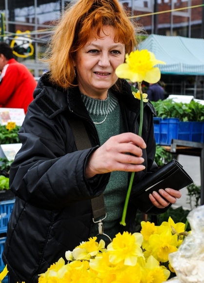 Deň narcisov v uliciach mesta Nitra. Žltý narcis je symbolom nádeje pre tých, ktorí bojujú s onkologickým ochorením. Nitra, 12. apríl 2013. Foto: SITA/Martin Havran